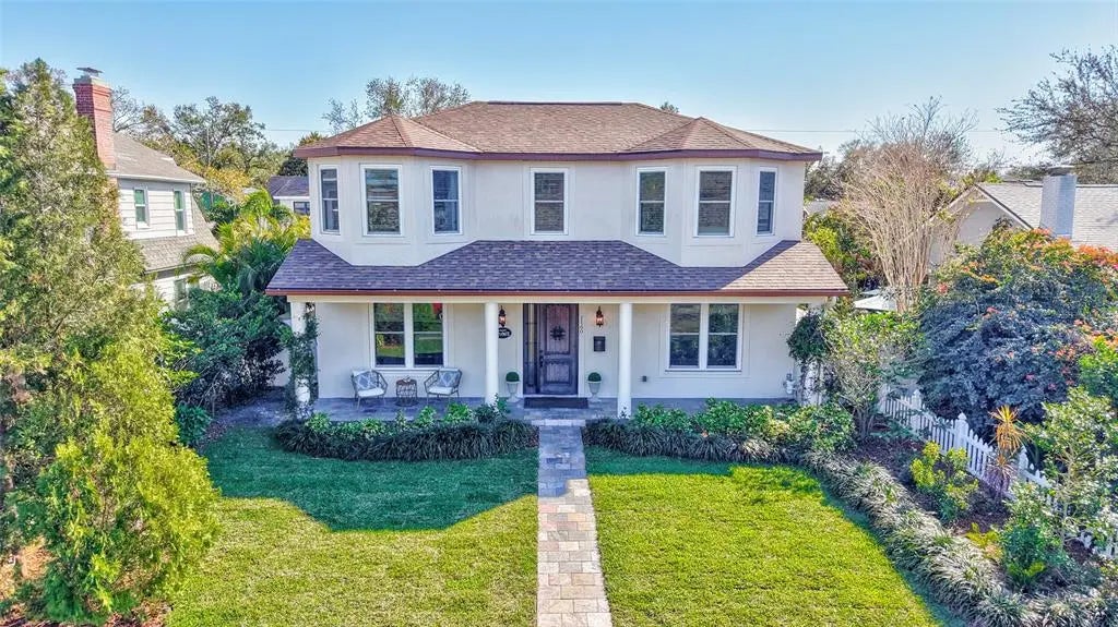 Updated Custom 4-Bedroom Home and 1-Bedroom Guest House in Woodlawn! This stunning home sits on a quiet, tree-lined street on a large lot in a sought-after historic neighborhood. The 2,382 SqFt main home has 2 primary bedroom suites, 2 secondary bedrooms, 2 full bathrooms and a common area half bathroom. The detached ADU adds an additional 1 bedroom and 1 bathroom to the property, what a rare find! Enjoy the main home's open floor plan with hardwood & tile floors, vaulted ceilings, and a spacious kitchen with granite counters, soft-close cabinets, and a breakfast bar. French doors lead to a covered porch and fenced backyard with room for a pool—perfect for indoor-outdoor living. The first-floor primary suite has a walk-in closet and en-suite bath. Upstairs, a second primary suite boasts a bay window, built-in seating, and a claw-foot tub. Additional upgrades include hurricane-rated windows, new roof, updated HVAC, and more—plus no flood insurance required! This home is located in a non-flood zone. The 740 sq ft guest house offers rental potential or extra space for family and garage. Located minutes from Crescent Lake, 4th St eateries, and Downtown St. Pete, this is a must-see!